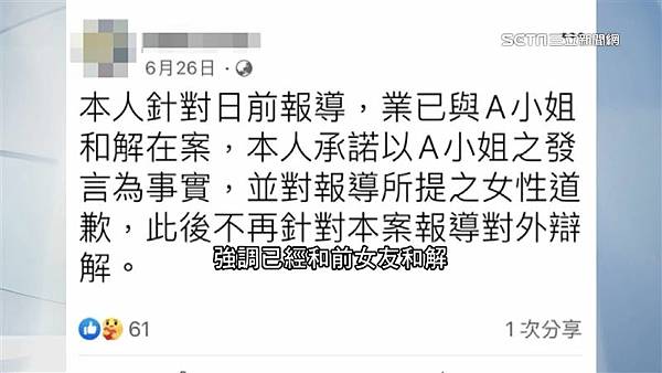 前女友向週刊爆料,當時專辦婦幼案件的陳嘉義曾對他掐脖施暴,甚至腳踏多條船。事後陳嘉義也在臉書發文道歉,強調已經和前女友和解,但對方所說的都是事實。