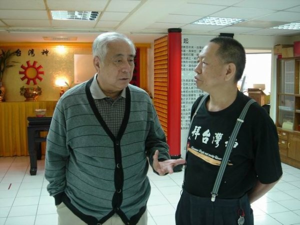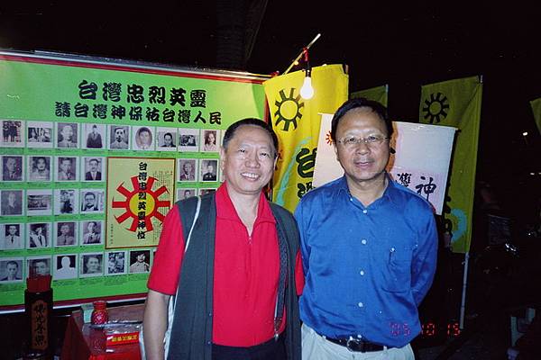 台中市長參選人林佳龍競選總部成立,大地到場推廣「台灣人拜台灣神」社會運動,杜正勝部長(時任教育部長)與楊緒東醫師(左1)於台灣神座前合影(攝於2005/10/15,詳見該場活動)。
