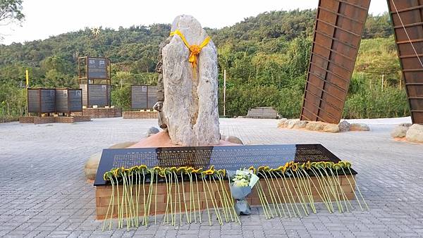 台灣大地文教基金會於今(19)日在台灣聖山為基金會創辦人暨台灣神道與台灣聖山創始人楊緒東醫師舉辦紀念碑揭碑追思會。總統蔡英文女士致贈花束致意;陳前總統水扁先生抱病前來參與追思,楊緒東醫師紀念碑碑文亦由陳前總統親自撰寫,紀念碑意象為楊醫師帶領大地志工向台灣神行禮的動作。