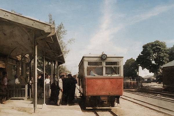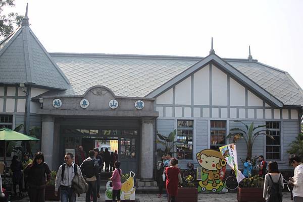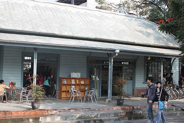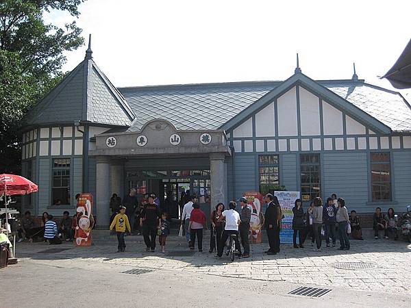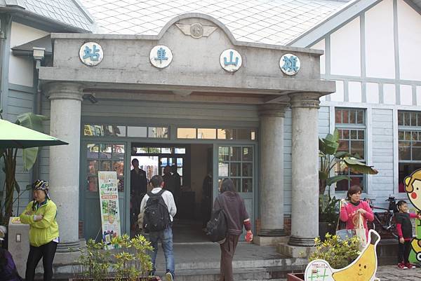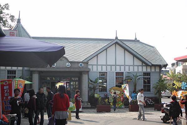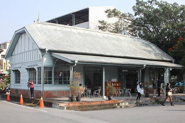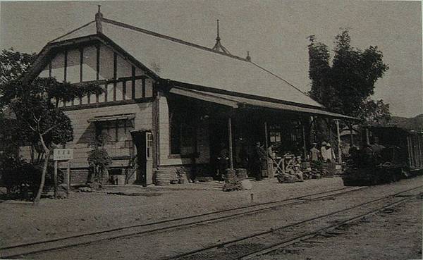 再仔細看車站入口前面就鋪設了鐵軌,如果乘客要進入車站便要直接從鐵軌上面跨越,也是另一個有趣之處。原來當時車站並沒有所謂的大門,載貨與載客的鐵軌分別在車站前後兩側,目前保留原鐵軌的只有車站前的一小段,是載送原料使用。
