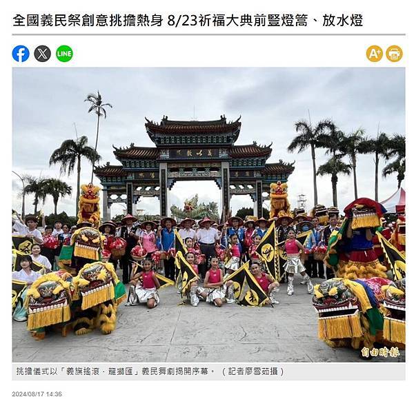 2024/08/17 14:36全國義民祭創意挑擔熱身 8/23祈福大典前豎燈篙、放水燈 - 生活 - 自由時報電子報 https://bit.ly/3AsAZZj