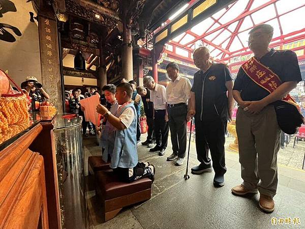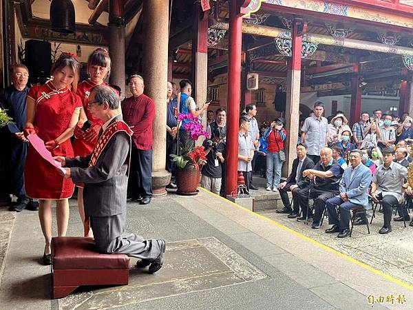 恭迎義民爺儀式進行三獻禮。(記者廖雪茹攝)