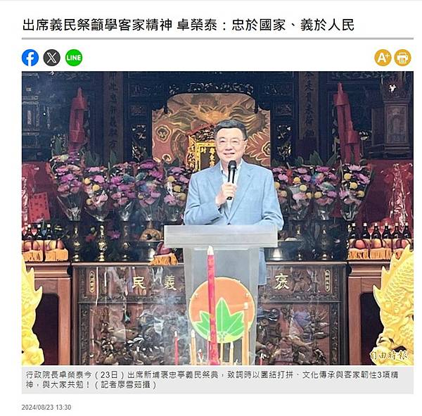 出席義民祭籲學客家精神 卓榮泰:忠於國家、義於人民 - 生活 - 自由時報電子報 https://bit.ly/4cLoIwE