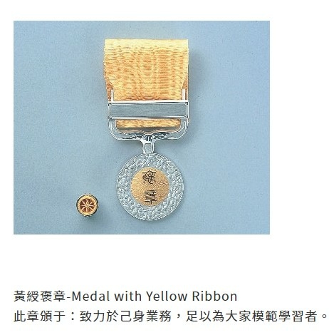 黃瑤褒章 早期明治20年 昭和22年廢止 昭和30年重設 黃瑤褒章 早期明治20年 昭和22年廢止 昭和30年重設