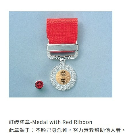 該褒章是贈給不顧自身安危,救助他人性命者。最早得到此獎章的是於明治十五年五月,青森郡的工藤仁次郎先生。在原別村的海岸,同鄉的小笠原三藏先生的漁船在暴風雨的激浪中顛覆,在頻臨死亡的狀態下工藤仁次郎先生將其救助。