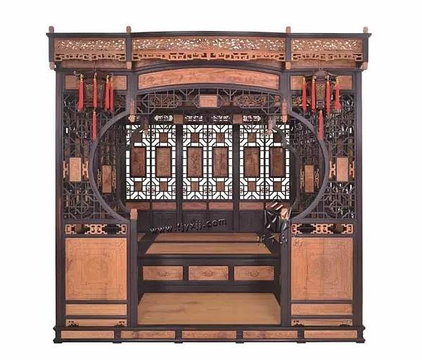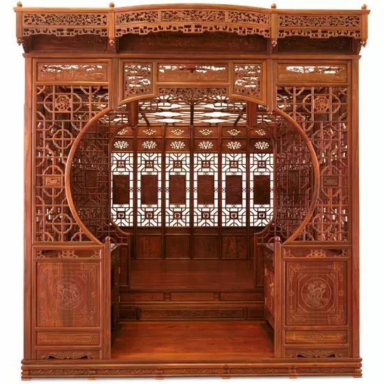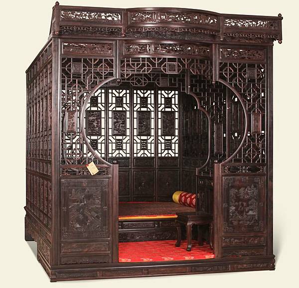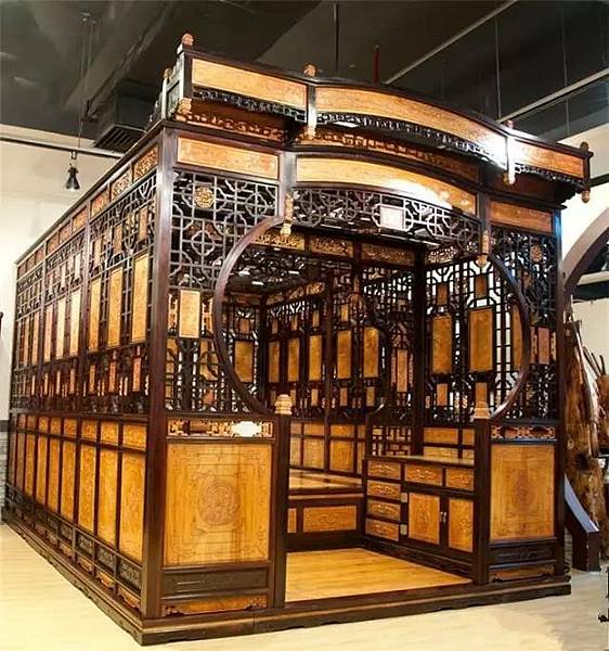 從千金小姐們生下來起,父母就開始讓著名的工匠打造她成年的閨房了,做工相當精緻。因為床太大,小姐邁著小碎步,繞床走一圈要百步,所以拔步床又叫百步床。