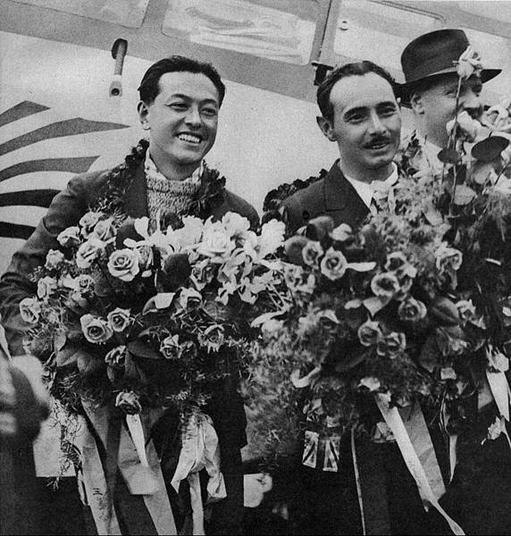 1937年4月6日(昭和12年) 24歲 他與工程師塚越一起登上國內飛機神風號,從立川機場飛往倫敦。