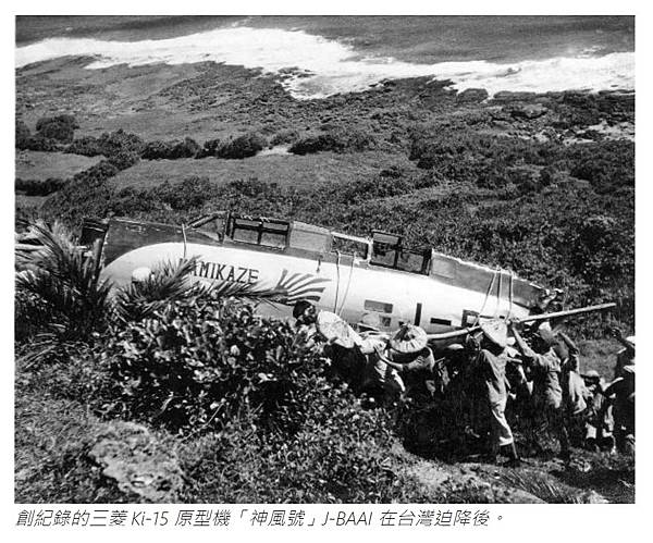 創紀錄的三菱 Ki-15 原型機「神風號」J-BAAI 在台灣迫降後。