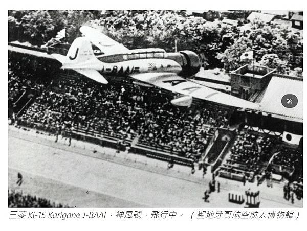 三菱 Ki-15 Karigane 原型機、J-BAAI、Kamikaze-gō。 (聖地牙哥航空航天博物館檔案館)