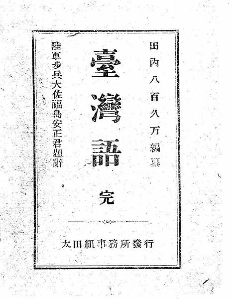 日本國接收臺灣之前,想當然耳認為,原屬於大清國領土的臺灣,應該也使用大清「官話」(Mandarin),沒想到,日本帶來臺灣的大清「官話」翻譯官,卻一點也派不上用場。接收臺灣的日本軍,為了與當地人溝通,遂聘請漢文耆宿,協助製作日語和臺灣Hô-ló話對譯教材,從1895年6月至1896年3月間,陸續出版《新領地臺灣島》〈日用臺灣土語〉(採用澎湖腔,1895年6月);《臺灣日用土語集(或臺灣語集)》(俉野保和編著,民友社發行,1895年7月18日)、《臺灣言語集》(岩永六一,中村鍾美堂發行,1895年8月29日)、《臺灣會話篇》(新竹同安腔,坂井釟五郎編著,嵩山房發行,1895年9月15日)、《大日本新領地臺灣語學案内》(改為泉州系統的臺灣福佬話,加藤由太郎編著,東洋堂書店發行,1895年9月22日)、《臺灣語》(漳州系腔,田內八百九萬編著,太田組事務所發行,1895年12月5日)、《臺灣土語》(佐野直記編著,中西虎彥發行,1895年12月28日)、《日臺會話大全》(水上梅彥編著,民友社發行,1896年2月17日)、《讀習自在臺灣語全集》(木原千楯編著,松村九兵衛發行,1896年3月2日)、《臺灣會話編》( 辻清藏、三矢重松編著,明法堂發行,1896年3月15日)、《警務必攜臺灣散語集》(御幡雅雯編著,總督府民政局保課發行,1896年3月下旬)等簡便教材。