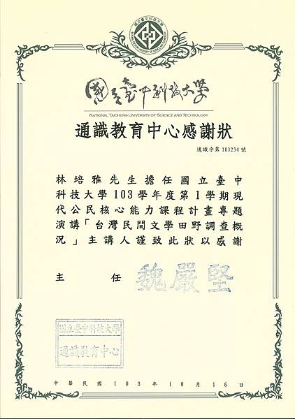 任教課程:台灣民間文學、台灣文化概論、文化人類學概論、台灣語文專題、
