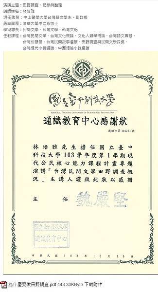 台灣俗諺語、台灣民間故事選讀、田野調查與民間文學採集、