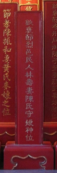 台南孔廟節孝祠奉祀的「陳守娘」神主牌位。(記者洪瑞琴攝)