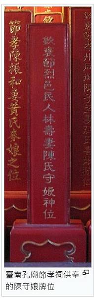 目前在臺南孔廟節孝祠放著陳守娘的牌位