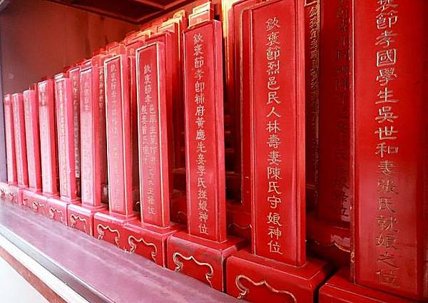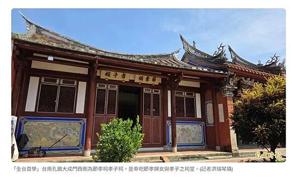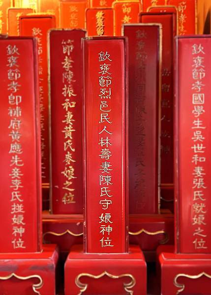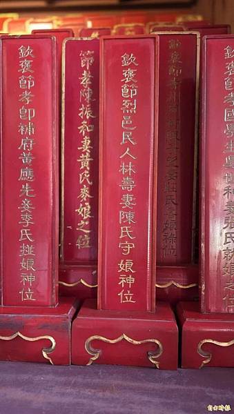 台南孔廟節孝祠祀有陳守娘牌位(右二)。(記者陳俊文攝)