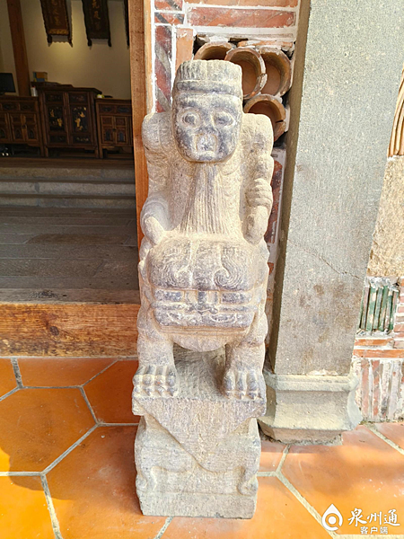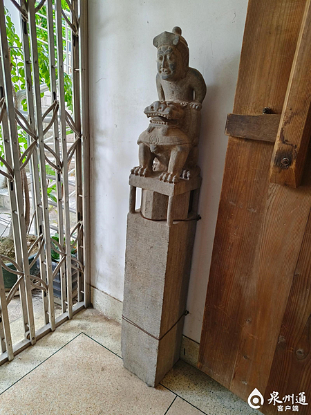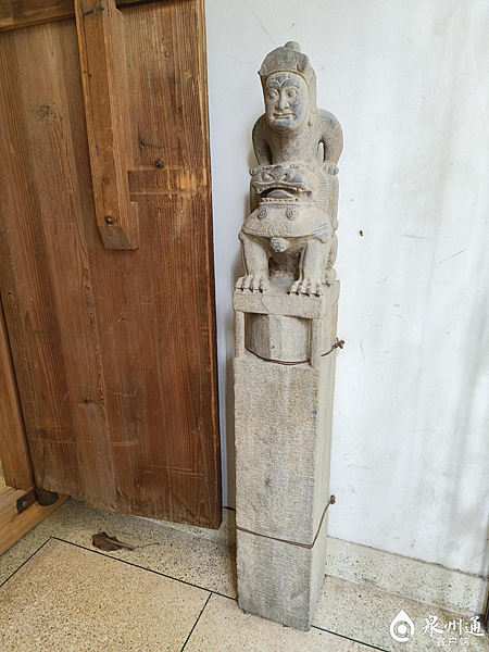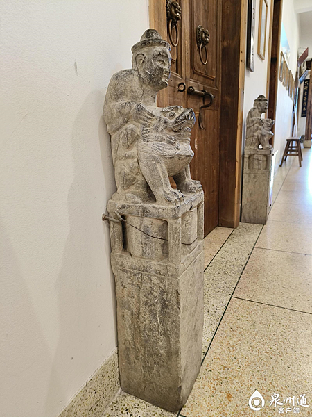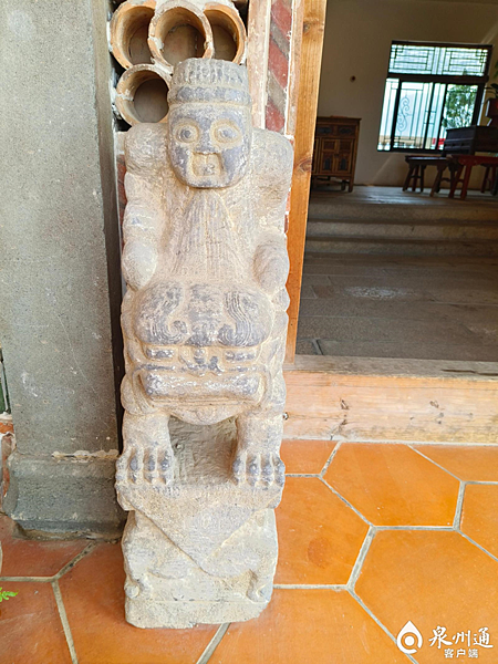 而在泉州刺桐時代村對木私塾的院門前,還有兩座胡人騎獅造型的石雕。吳老師介紹,這兩座是拴馬樁,以胡人騎獅的造型呈現。古時,遊牧民族驍勇善戰的形象深入人心,頗受人們崇拜,人們就將遊牧民族的勇士雕刻在獅子上面,表達開疆擴土的偉大抱負。這兩座拴馬樁來源中原地區。中原地區作為中華文化的起源之地,歷經多個朝代的變革,形成了獨特的中原文化,是中華文化的重要源頭和核心組成部分。
