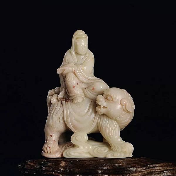 從一些文物資料上看,魏晉時期,中原胡人騎獅像開始出現在一些銅器與瓷器上。2003年5月王羲之故居擴建工程就出土了一尊青釉胡人騎獅器,造型獨特。文物為西晉時期南方越窯所產的青瓷精品。在陝西,至今還保存有不少柱頭上雕刻胡人騎獅像的古代拴馬柱。宋代開始出現一種由胡人與獅子組成的紋飾,叫獅蠻腰帶。胡人騎獅便是其中最為常見的造型。據由此可證,胡人騎獅造型從魏晉至宋元時期開始漸漸流行。明代很可能是此造型最為盛行的時期。