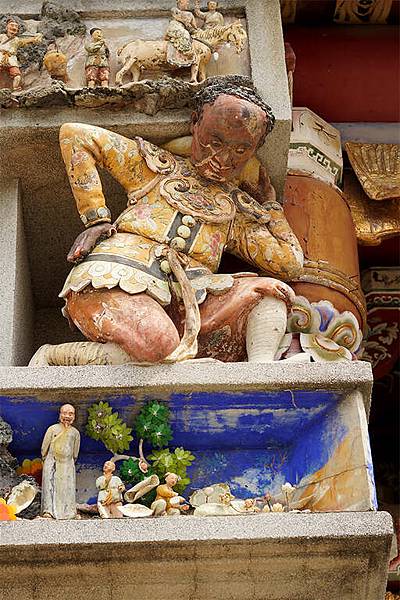 胡人與獅的組合,除了騎獅,還有牽獅、戲獅、馴獅------,無論何種組合法,均寓意為祈福與鎮煞。在閩南地區,隨著歐洲大航海時代的到來,明清時期的胡人形象漸漸演變成洋人、番人,但在民俗意義上,仍可通稱為胡人。