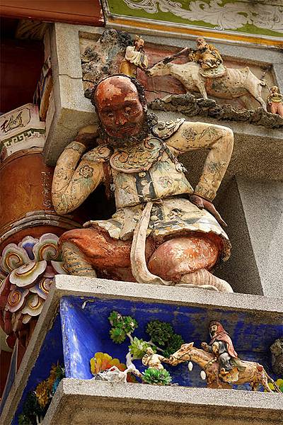 從正面看,胡人騎獅造型與建築風格十分搭配。