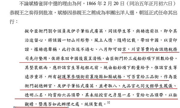 赫德先行墊付訪問團的費用,預備回國後由總理衙門「照數發給」[參1]。