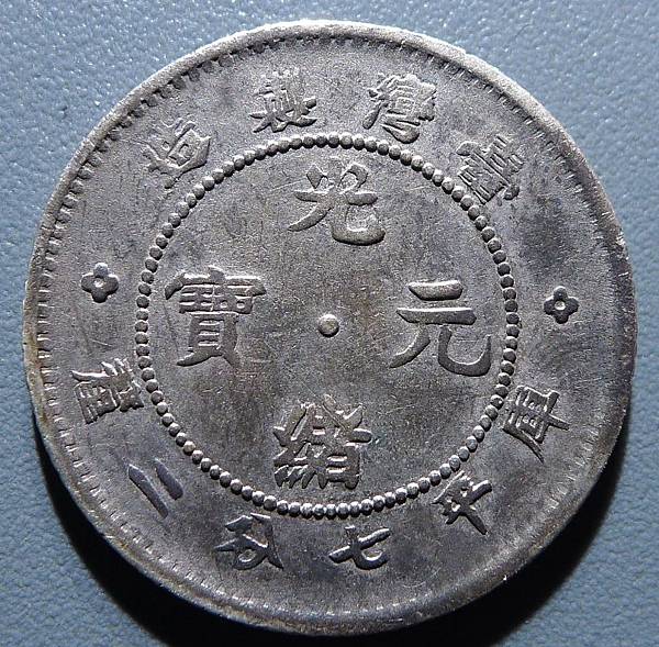 1893年台灣製造光緒元寶庫平七分二厘銀幣