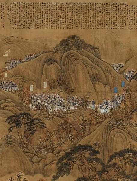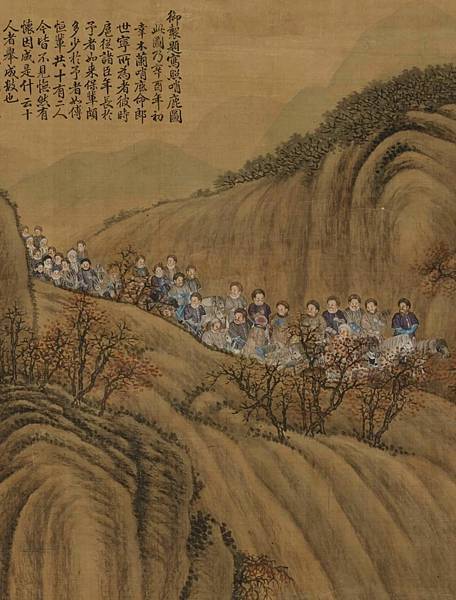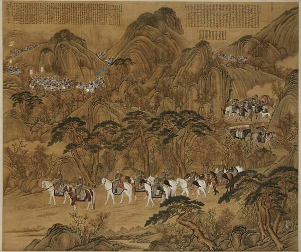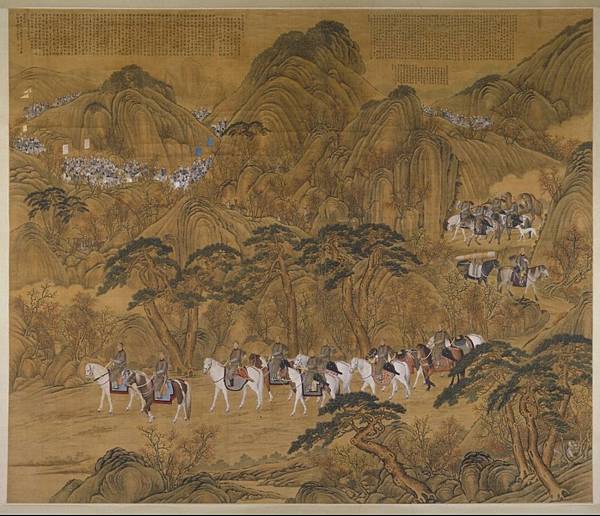 這幅畫是描繪行圍的全體行列剛剛進入木蘭山區的景象。乾隆和近景的一些主要人物,都具有西法肖像畫的特點。可以看出是寫生的作品,衣物馬匹刻畫精細入微,立體的質感很強,但明暗的反差相當柔和,與純粹中國書法的背景山樹統一和諧。大隊人馬在行進中的氣氛生動逼真,由於遠近人物的此例適中,更增加了畫面的深遠。 [4]