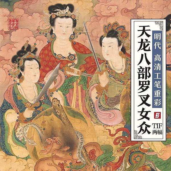 克利夫蘭美術館藏大明景泰年繪《天龍八部羅叉女眾》像軸,明代