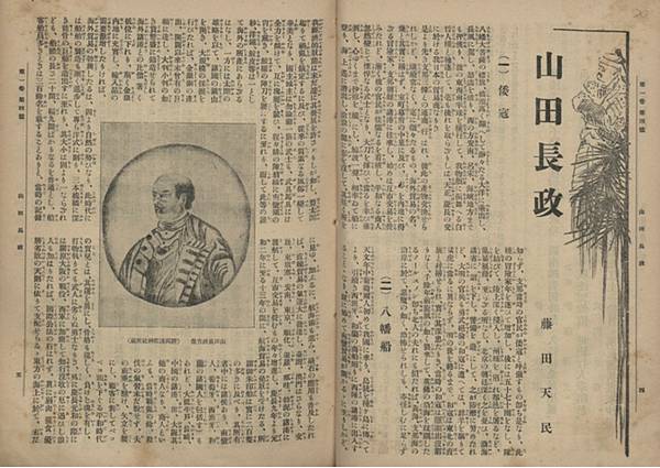 山田長政,通稱仁左衛門,年少時即開始參與朱印船貿易,山田長政也出現在《台灣通史》,書中記載西元1604年山田長政乘坐朱印船從長崎出發,在台灣停留之後,前往並定居於大城王國(阿育陀耶王國 Ayothaya 今泰國),加入津田又左右衛門的日本僱傭兵隊,成為阿育陀耶日本人町(アユタヤ日本人町)首領。