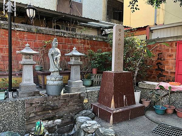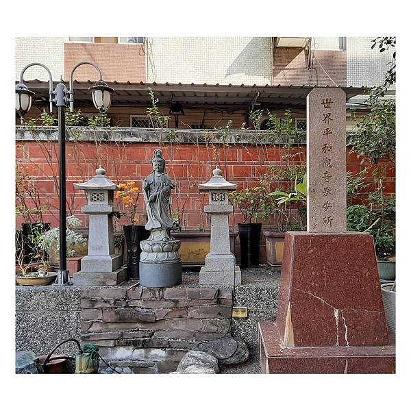 入山門在前庭左方有「世界平和觀音奉安所」石碑與觀世音菩薩佛像,