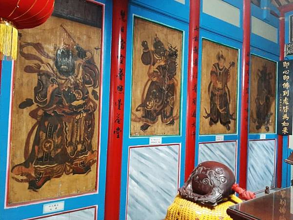 古匾觀歷史,曇花佛堂的「四大天王」壁畫是更是上乘之作,天王分持寶劍、琵琶、傘蓋、索蛇