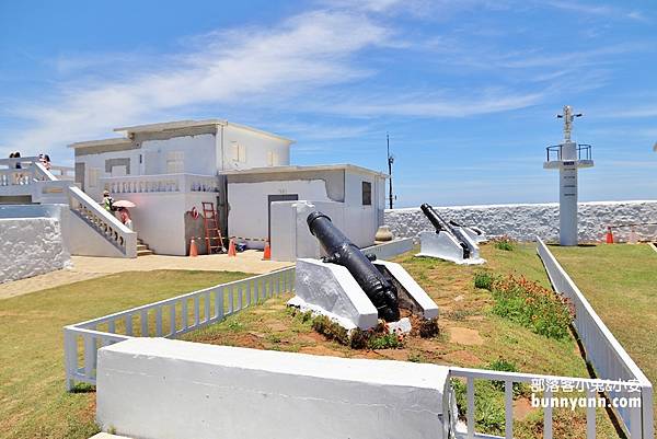 2.現今所見之燈塔為清領時期海關總稅務司赫德(Rebert Hart)主導,英國土木工程師韓得善(David Marr Henderson)於1874(清同治13)年設計,1875年8月11日(光緒元年7月11日)動工,同年年底完成,並於12月15日(光緒元年11月18日)點燈,是臺澎地區創建最早的現代化西式燈塔。燈塔入口門楣上留有「DAVID M. HENDERSON 1874」鑄鐵名牌,是臺澎地區首座於入口門楣以鑄鐵鑄有設計者名號及年代的燈塔。院牆角尚存閩海關界碑兩方,極具歷史價值。另院牆外有洋人看守者的女兒Nelly O’Driscoll的十字型墓碑一方,為早期燈塔有外國人看守的見證。