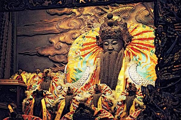 新竹市北區樹林頭境福宮-以藍面紅鬚之邱王爺為主,其他四位王爺為輔。