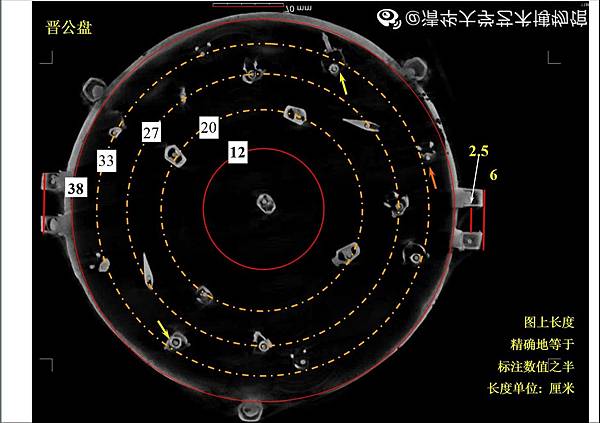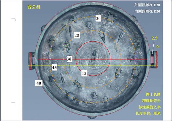 4 筆者的疑問是,判斷子仲姜盤為春秋期間晉國器物的證據為何?形制、紋飾、銘文──「作為」和「永用為寶」似均為孤例,還是其後十年問世的、也有大量浮雕和圓雕的晉公盤?後者銘文確實與春秋期間晉國相關;不過,如下列博文所述晉公盤適用米製尺度-1790年後法國制定,而子仲姜盤則適用尺長22.5 cm。請注意,周朝使用尺長21.5 cm 完全沒有疑問