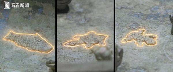 可以想像,當仲姜宴前飯後行「沃盥之禮」時,水從銅匜中灌出,淨手之後注入盤中,在水流的衝擊下,小動物彷彿被瞬間喚醒,這些動物隨即開始旋轉起來。看著魚禽游弋其間,一派生機勃勃的景象,想必仲薑的眼角心頭盡是笑意,臉上洋溢著幸福與喜悅。