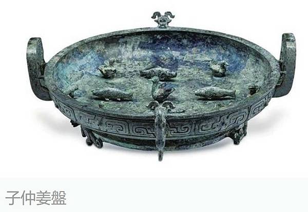 春秋子仲姜盤是晉國太師專為妻子訂製的禮物。盤內雕塑有一些水生動物,包括龜、魚、蛙、鴨與水鳥等,且均可作360度旋轉,真可謂巧奪天工,妙趣橫生,令人拍手稱絕。