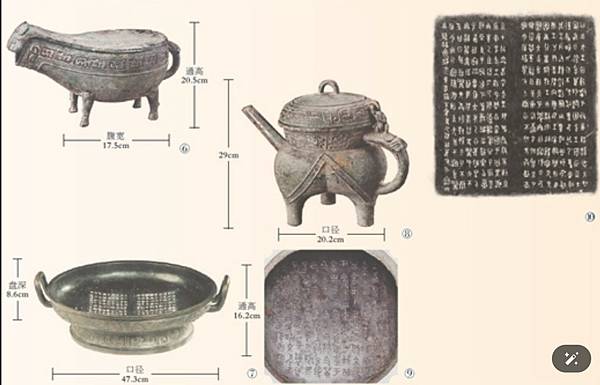 西周青銅盤為承水器,發現較多,如虢季子白盤、眉縣楊家村窖藏出土的逨盤、周原博物院收藏的牆盤等。