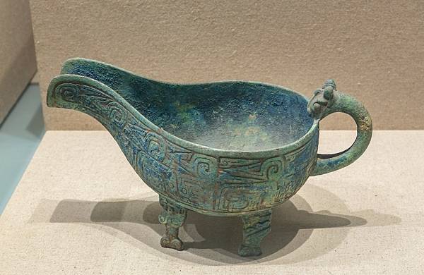 盉:形狀較多,一般是圓口,深腹,有蓋,前有流,后有鋬,下有三足或四足,蓋和鋬之間有鏈相連接。商代盉多空心足﹔西周盉多實足﹔春秋戰國出現兩腹有提梁的盉。周原地區扶風縣齊家村出土西周鳥紋盉、強家村墓1出土西周素面盉、眉縣楊家村窖藏出土逨盉、現藏於岐山縣周原博物館的衛盉是這類器物的典型代表。