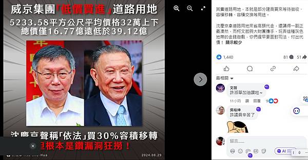 由上可知,沈慶京從三十年前強奪國營事業中工和中石化,未受到法律制裁,以致近年他更囂張不斷施壓及意圖行賄台北市長及其團隊,以獲取暴利。郝市府守住了,柯市府放行了。國人大多認真工作賺取微薄薪水,反觀小沈貪得無饜奸商,不擇手段獲取暴利,盼司法單位明察,別再讓他得逞了。