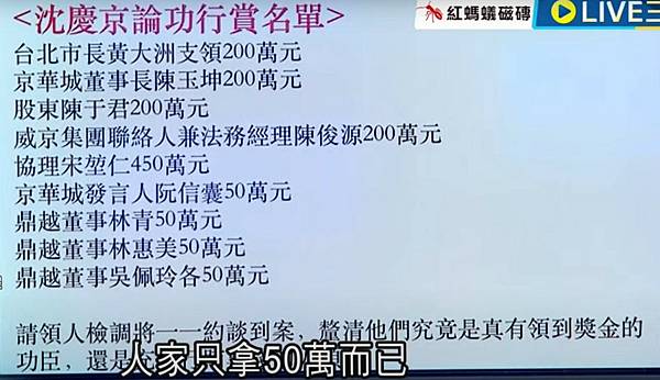 京華城弊案》沈慶京上億「公關費」去向不明 檢廉懷疑還有官員、民代收賄