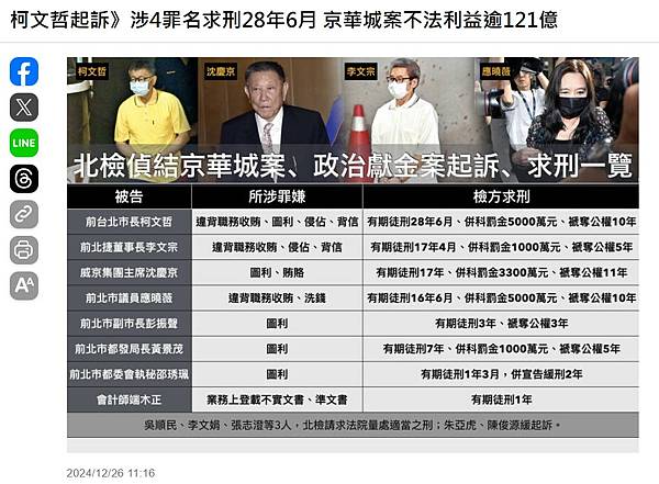 柯文哲起訴/證據都在這 柯文哲4大案4大罪一次看 https://bit.ly/4a7uskx