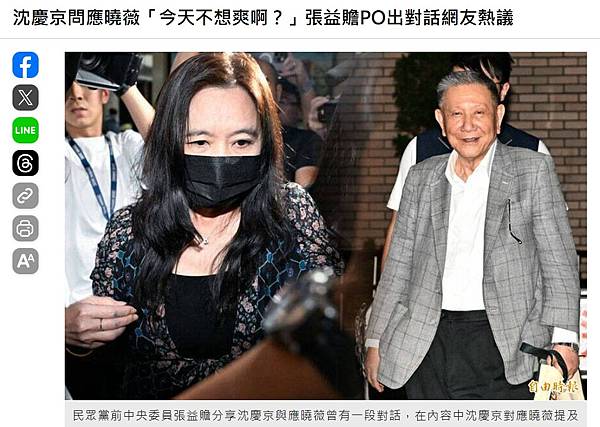 沈慶京問應曉薇「今天不想爽啊?」張益贍PO出對話網友熱議 - 政治 - 自由時報電子報