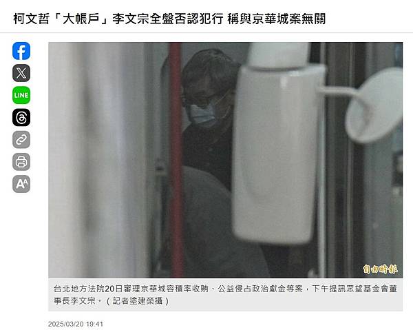 柯文哲「大帳戶」李文宗全盤否認犯行 稱與京華城案無關 - 社會 - 自由時報電子報