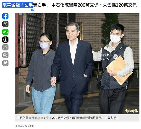 京華城疑「左手賣右手」 中石化陳瑞隆200萬交保、朱雲鵬120萬交保 - 社會 - 自由時報電子報 https://bit.ly/44QfBKE