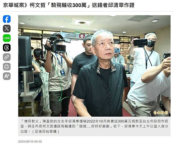 京華城案》柯文哲「騎飛輪收300萬」送錢者邱清章作證 - 政治 - 自由時報電子報