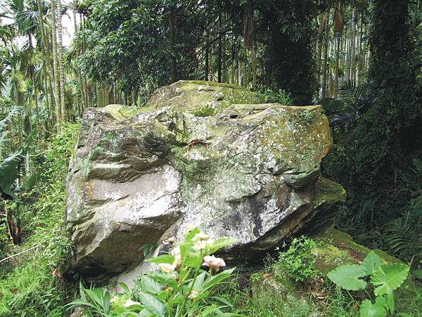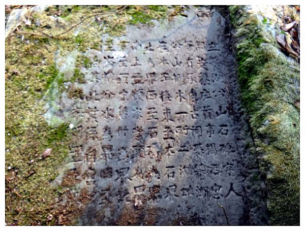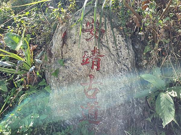 有一粒大石頭為詔安寮廟產界址石,石頭頂部刻有「詔安寮莊石公山」及此石沿革資料,「此石係清光緒12年(西元1887年)時期所立...........」,增添了此條古道的古蹟文化與歷史價值。照相後續上。