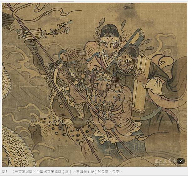圖3 〈三官出巡圖〉中幫水官舉幡旗(前)、捧簿錄(後)的鬼卒、鬼吏。