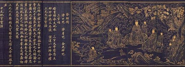 「三官」圖像在唐代就出現了。根據十一世紀初的畫史文獻《益州名畫錄》,晚唐四川地區的官員大手筆地為當地寺院製作的神祇先賢圖像中,就包含「三官大帝」圖像。爾後,歷代都有「三官」圖像以壁畫、卷軸或經書插圖等形式流傳(註4)。