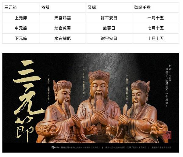 道教有天、地、水三官大帝載錄世人善惡之說,三元節,就是「三官大帝」的誕辰