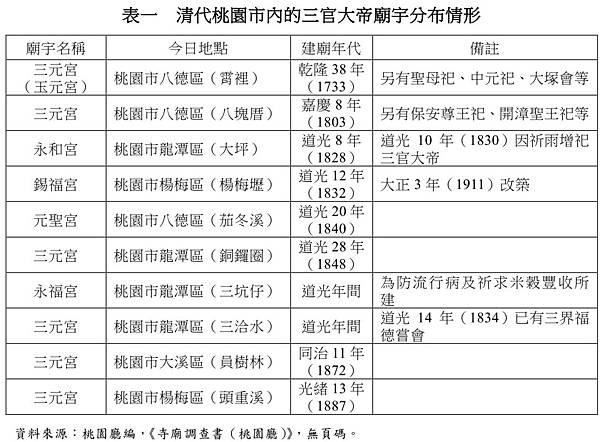 陳志豪,〈清代臺灣北部的三官大帝信仰源流小考──以新竹縣新埔鎮的大茅埔三元宮為例〉《師大臺灣史學報》,11(2018.12),頁-33-53。.pdf