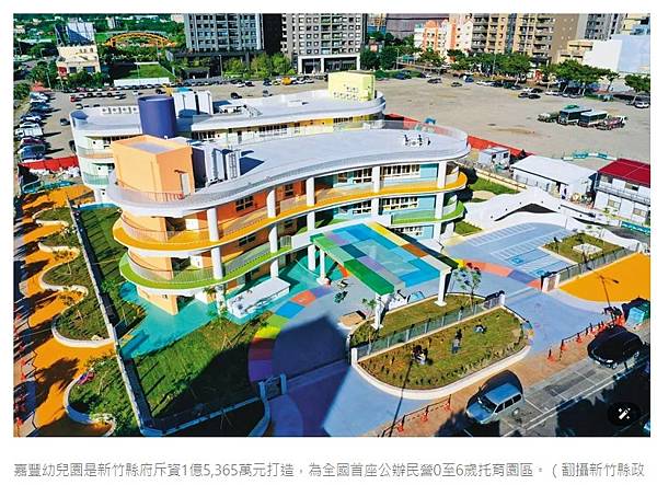 嘉豐幼兒園是新竹縣府斥資1億5,365萬元打造,為全國首座公辦民營0至6歲托育園區。(翻攝新竹縣政府官網)